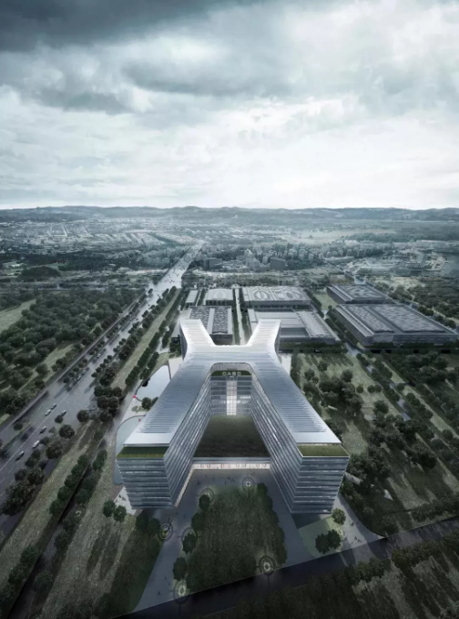 ????▲ 四塔方案呈“H”形布局,能巧妙消解基地內(nèi)復(fù)雜的地形高差,從而建構(gòu)更加整體、開(kāi)放的園區(qū)環(huán)境。