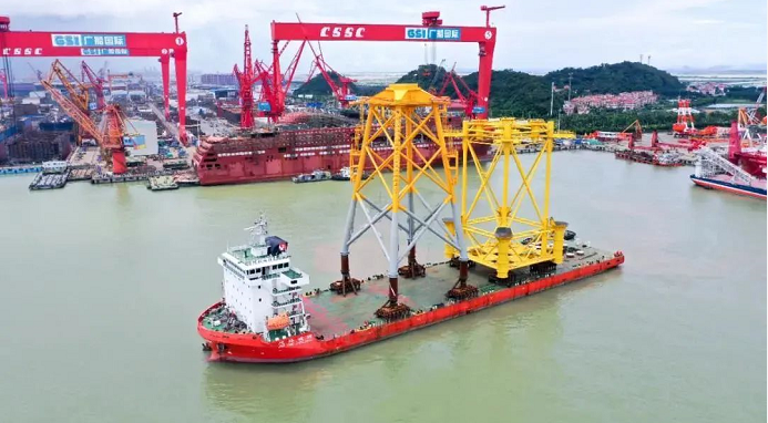 日前,由中國船舶集團旗下廣船國際承建的廣東陽江南鵬島300兆瓦海上風電項目首套導管架及輔助平臺順利交運。這是廣船國際承建并交運的首批首個風電導管架,也是目前國內(nèi)最大的風電導管架,標志著廣船國際在風電業(yè)務(wù)領(lǐng)域?qū)崿F(xiàn)了經(jīng)營、生產(chǎn)、交付全環(huán)節(jié)突破,對后續(xù)承接風電項目業(yè)務(wù)、拓展風電市場具有重要意義。