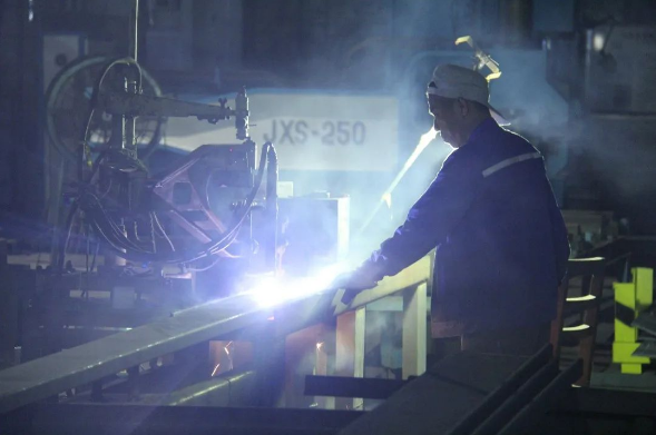 炙熱的切割火焰,照亮了生產(chǎn)廠房