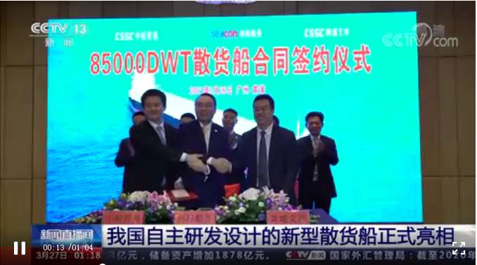 3月26日,中國船舶集團(tuán)旗下黃埔文沖舉行發(fā)布會,正式推出該公司首艘全過程自主設(shè)計,并獲得訂單的散貨船85000載重噸(DWT)散貨船船型。
