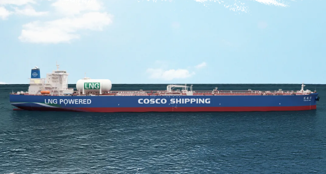 5月28日,中國船舶集團旗下大船集團為中遠海運集團建造的全球首制雙燃料超大型原油船(VLCC) 液化天然氣(LNG)燃料儲艙——2x3500m3C型LNG低溫儲艙成功交付。