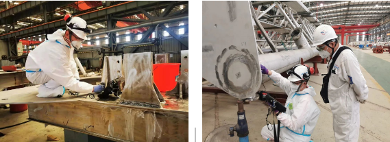 由于該替代檢測方法需要提供一系列的工藝規程等相關技術文件,并得到LR船級社和船東的技術認可。按照常規,這一流程需要較長的時間。為了滿足生產節拍的需要,檢測公司接到任務后,馬上組織專業技術人員投入工藝規程的編制,僅用了三天三夜的時間就完成應急任務,得到了江南造船的高度贊揚。