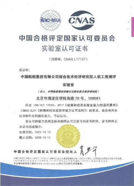 近日,中國船舶集團旗下中船綜合院人機工效測評實驗室(以下簡稱“實驗室”)獲得中國合格評定國家認可委員會(CNAS)實驗室認可證書,成為國內(nèi)首家具備國家認可人機工效測評能力的試驗機構。