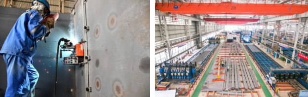 以U肋雙面全熔透焊接技術(shù)和先進(jìn)視覺識別焊接機(jī)器人技術(shù)為基礎(chǔ),全新規(guī)劃了國內(nèi)建設(shè)規(guī)模最大、建設(shè)標(biāo)準(zhǔn)最高、配套最完善的橋梁板單元智能制造車間,解決鋼橋正交異性鋼橋面板結(jié)構(gòu)疲勞病害等技術(shù)難題。