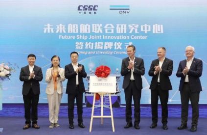 6月19日,中國(guó)船舶集團(tuán)旗下上海船舶研究設(shè)計(jì)院(簡(jiǎn)稱上船院)與DNV集團(tuán)旗下挪威船級(jí)社中國(guó)有限公司(簡(jiǎn)稱DNV)聯(lián)合創(chuàng)建的中國(guó)首個(gè)“未來船舶聯(lián)合研究中心”在上海正式揭牌,共同打造國(guó)際化技術(shù)創(chuàng)新合作平臺(tái)。這是雙方攜手推動(dòng)戰(zhàn)略合作關(guān)系逐步走深、走實(shí)的又一重要舉措,也是具有里程碑意義的全方位戰(zhàn)略合作又一成果,必將成為全球海事應(yīng)對(duì)脫碳與數(shù)字化轉(zhuǎn)型開展前瞻性地國(guó)際化協(xié)作的典范。中國(guó)船舶集團(tuán)黨組成員、副總經(jīng)理盛紀(jì)綱,DNV海事首席執(zhí)行官柯努特(Knut ?rbeck-Nilssen)為聯(lián)合研究中心揭牌并致辭。