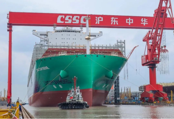 11月20日,由中國船舶集團(tuán)旗下滬東中華建造的全球最大24000TEU級液化天然氣(LNG)雙燃料動(dòng)力超大型集裝箱船首制船,提前10天順利出塢。