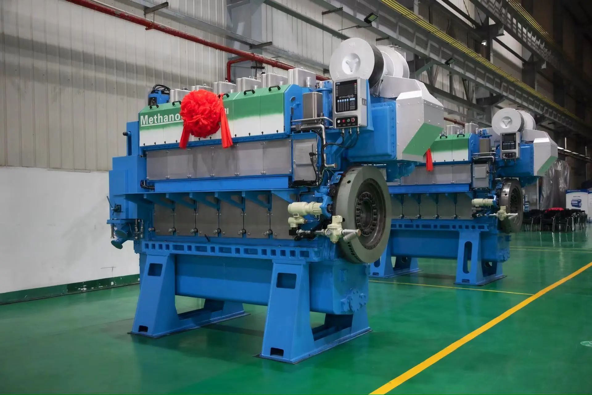 得益于先進的甲醇高壓缸內直噴技術,該型機性能與傳統柴油機相當,應用綠色甲醇的情況下單臺機每年可減碳超5000噸,減少60%氮氧化物和高達99%硫氧化物排放,技術指標達到世界先進水平。同時,該型機還匹配了七一一所自主研制的甲醇建壓模塊、甲醇閥組單元、甲醇供給系統和甲醇后處理系統,可為客戶提供一體化的完整解決方案。