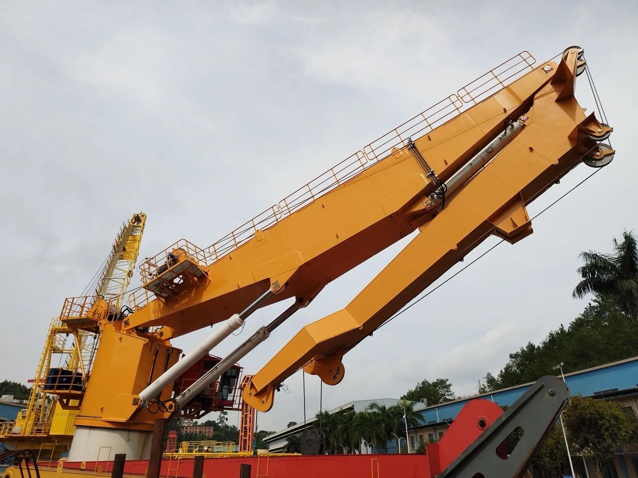 該起重機相較于傳統海工起重機大有不同,它對標國際一流海工起重裝備,有更為嚴格的行業標準及規范,更多元的功能需求。該起重機在現有的海工吊基礎上增加了主動安全防護(AOPS)、智能化安全防護、油缸泄漏檢測等多種功能,這些功能均是華南船機首次嘗試設計,其創新性與難度不言而喻。