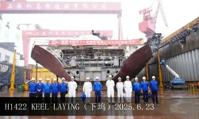 6月23日,外高橋造船建造的11.4萬噸阿芙拉型成品油船H1422船順利下塢。