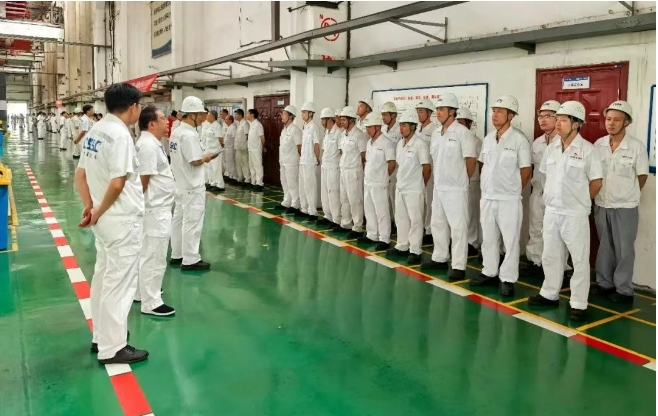 武漢船機以班前會“五步法”為重點,將安全和質(zhì)量等內(nèi)容融入日常,采用案例分享、問題清單整改以及組織開展技能交流等形式,不斷提升全員操作規(guī)范水平與安全生產(chǎn)意識。