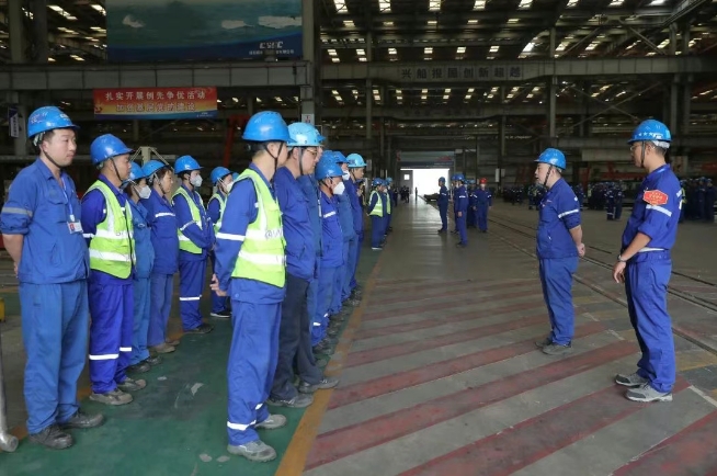 廣船國際按照“五步法”認(rèn)真組織開展班前會,組織開展班前會安全交底比賽,建立10個“優(yōu)秀班前會”班組,每周組織班前會觀摩學(xué)習(xí),將“優(yōu)秀班前會”進(jìn)行推廣。