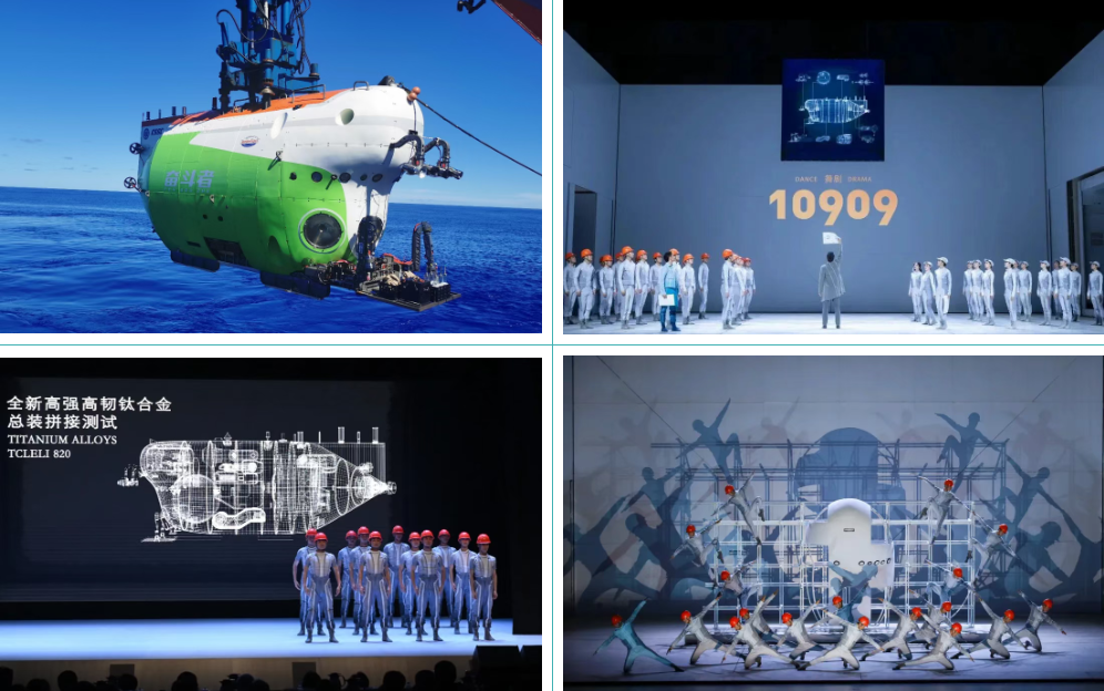 《10909》舞劇以七〇二所科研工作者為原型,以“奮斗者”號全海深載人潛水器在馬里亞納海溝首次探底10909米為題材,通過精湛的舞蹈語言與創(chuàng)新的舞臺表現(xiàn),生動再現(xiàn)“奮斗者”號全海深載人潛水器研制、下潛、海試的奮斗過程。該劇先后獲評第十四屆全國舞蹈展演優(yōu)秀劇目、國家藝術(shù)基金2024年度資助項目、2022年江蘇省重大題材文藝創(chuàng)作項目等。