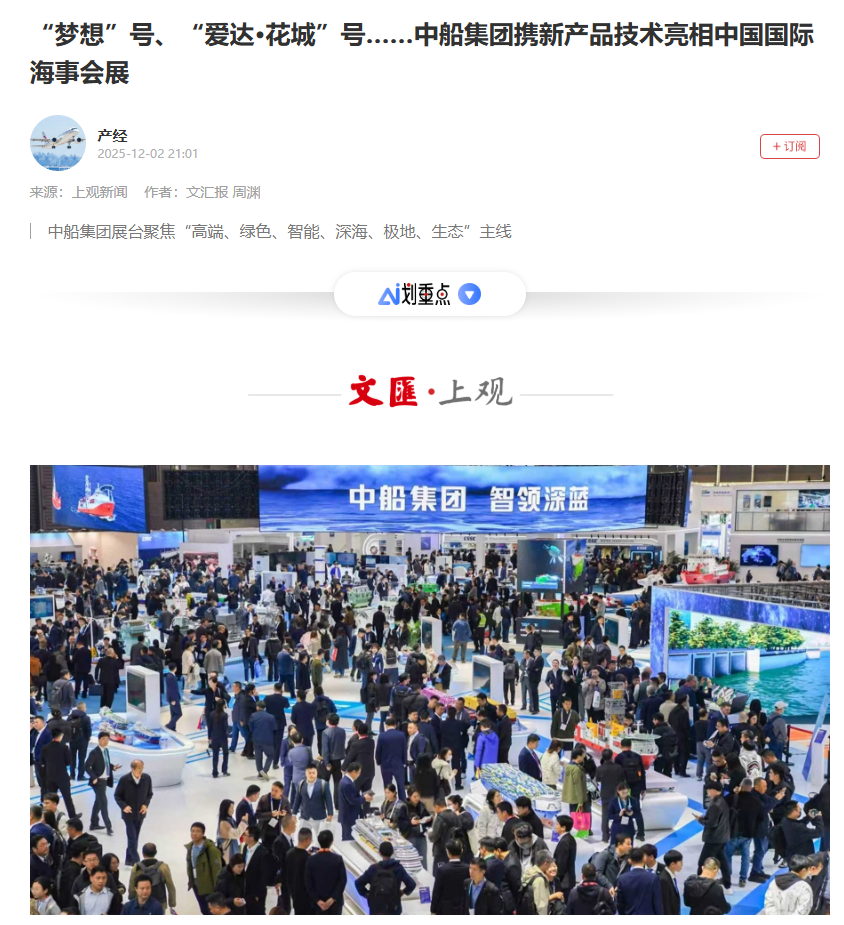 12月2-5日,2025中國國際海事會展期間,中國船舶集團有限公司攜眾多新產品新技術精彩亮相,并圍繞六大領域舉行了40多場發布及推介活動。