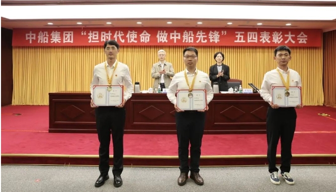 會(huì)上,徐鵬、賈海英共同為獲得集團(tuán)公司表彰的青年代表頒獎(jiǎng)。來(lái)自中船集團(tuán)旗下滬東中華、渤海造船、七〇八所的三位獲獎(jiǎng)青年代表分別作了交流發(fā)言。